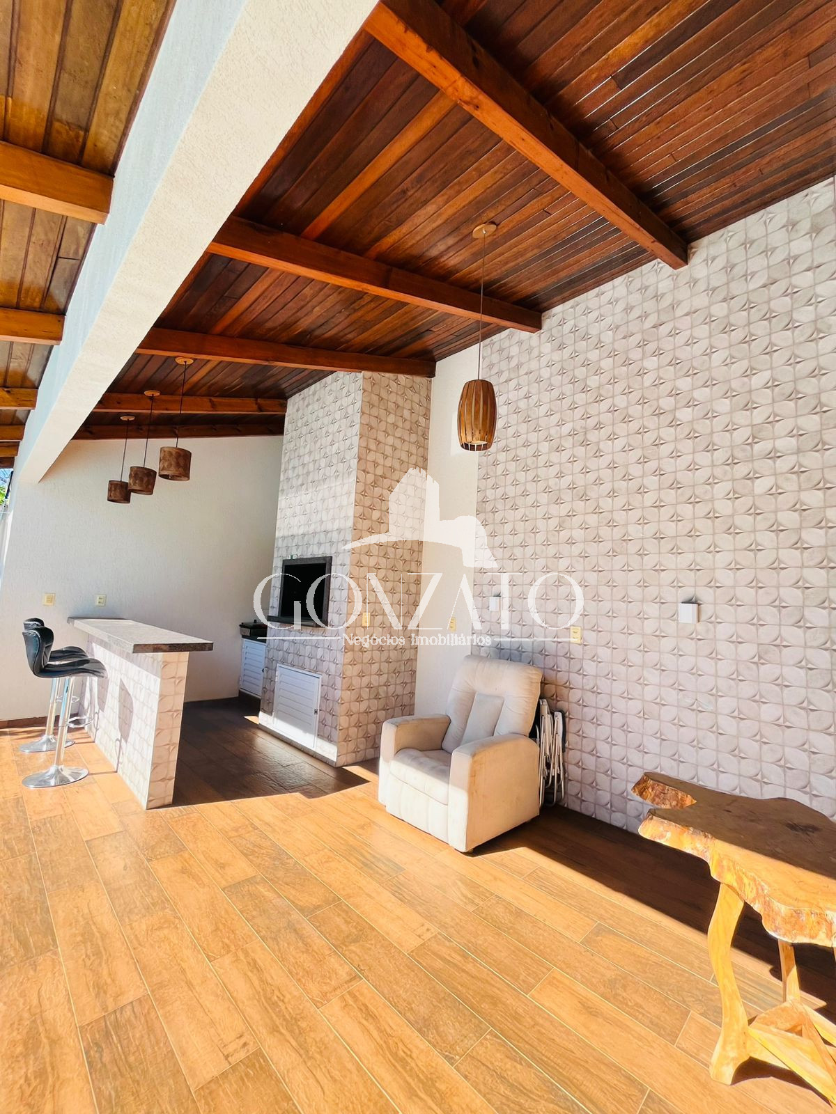 Cobertura de telha e madeira estilo rústico
